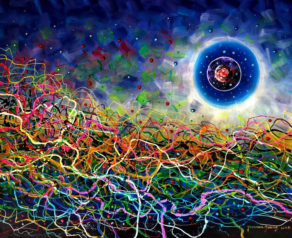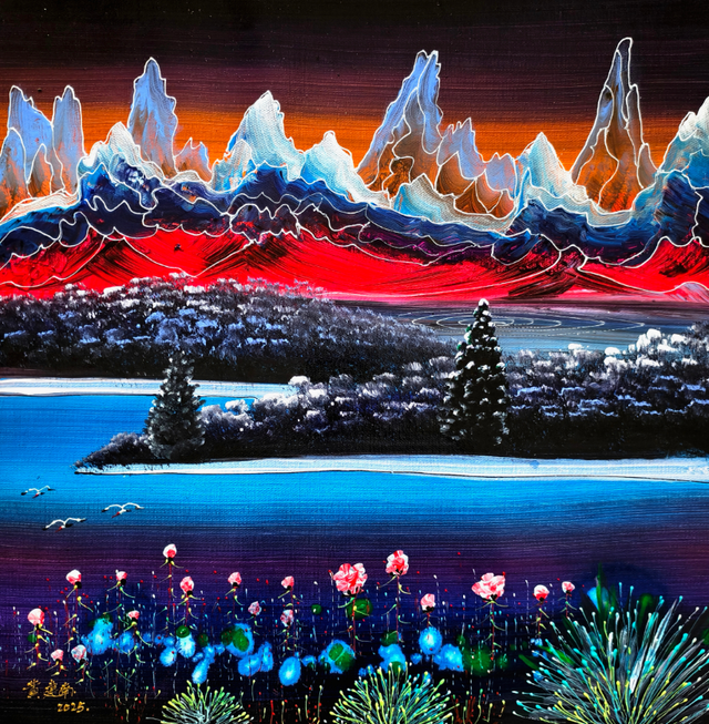 这份亮眼成绩的背后,是黄建南对艺术的极致追求与深厚积累。早年,他曾历时九年徒步三万八千多公里,走遍祖国大江南北,深入大漠乡村搜集创作素材;近三十年来,他游历世界数十个国家,举办个人画展,四度参展卢浮宫并屡获金质奖、银质奖及创新奖,连续十余年参展法国大皇宫展览且多次斩获荣誉奖项。正如具有世界影响力的美国艺术评论家詹姆斯所言:“黄建南得益于丰富的经历及积累,融通中外,将中国传统国画的意境技法与西方油画的光影色彩完美结合,创立了独具一格的个人综合绘画体系。”