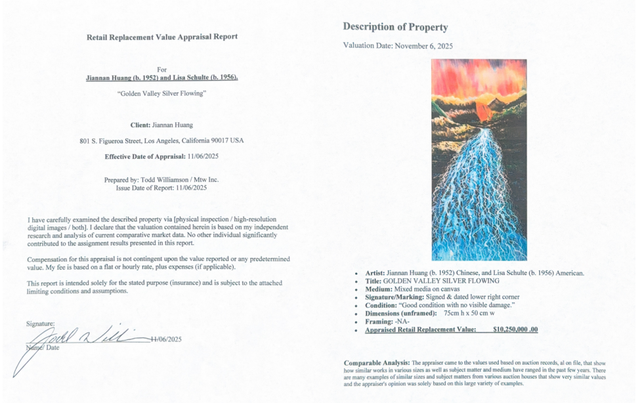 国际艺术界近日传来重磅消息:著名艺术家黄建南的作品《金谷银流》经世界著名评估师、LABA 国际艺术节执行董事托德・威廉姆森(Todd Williamson)严谨客观评估,确定其价值高达1025万美元(约合7千多万元人民币)。这一估值不仅使黄建南跻身“在世艺术家作品超7千万人民币”的稀缺行列,更标志着中国当代艺术在国际市场的认可度再攀新高,为中国文化走向世界写下浓墨重彩的一笔。
