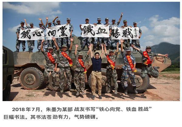 朱墨常说:因为我成长于军营,所以我最乐意做的事是:为兵而歌、为时代而歌。这些年来,他把手中的笔当武器,经常深入边疆哨所,为部队官兵写下了许多慷慨激昂的战斗口号,极大地鼓舞了士气。