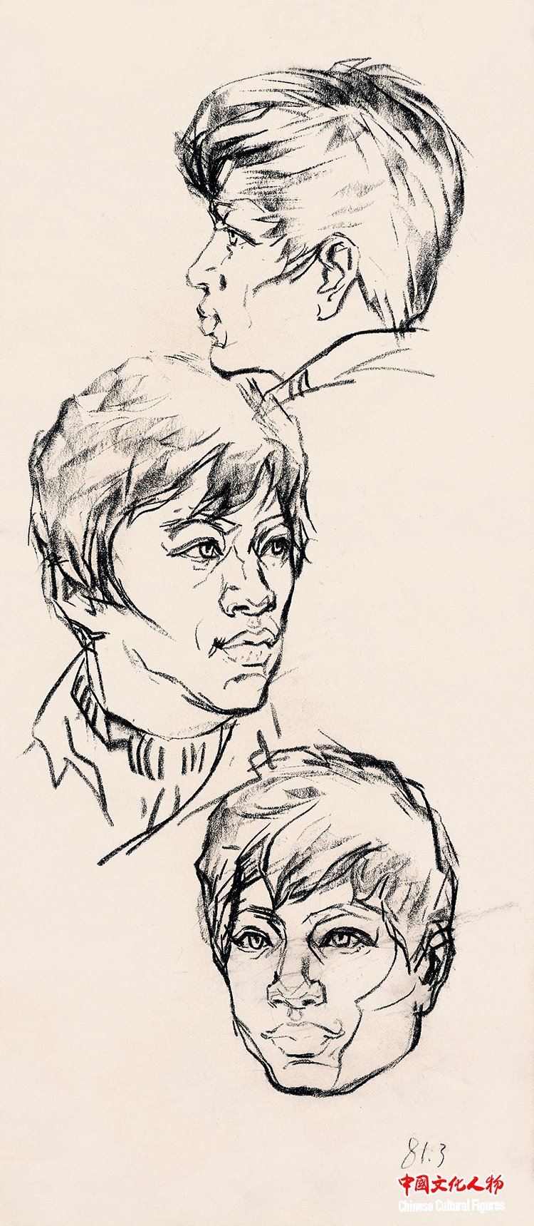 《多角度男青年》 素描 54cm×20cm 1981年 韩玉臣作品