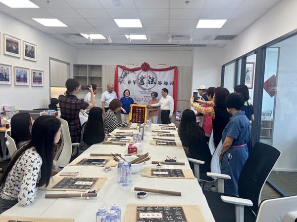 本网讯(欧盟首都布鲁塞尔消息)2023年6月10日(星期六)上午10:00时,江西省旅港同乡会、中华两岸(香港)文创观光协会联合主办的“软笔书法兴趣班”首次课程暨开班仪式在香港万泰利广场隆重举行。