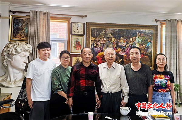 2024年8月5日,为商讨张老师美术作品集第10卷编辑问题,我与原河北美术出版社编辑室主任张星、雅昌工作人员李如燕,去找张老师。尽管他听力越来越差,但仍思路清晰,谈吐自如,乐观豁达,特别是得知付出多年心血的美术作品集即将面世时,更是激动不已。